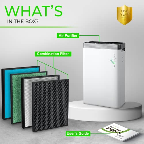 PURO²XYGEN P500i - Air Purifier with H13 HEPA Filter - Up to 1650 sq ft Large Room Air Purifier for Home - Air Cleaner for Pet Dander, Dust, Odor, Smoke and Indoor Pollutants- WiFi Control, Child Lock