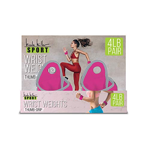 Nicole Miller Wrist Weight Sets Thumblock Hand Weights Sets For Women 2lb Each, 4lb Pair Total Magenta/Gray
