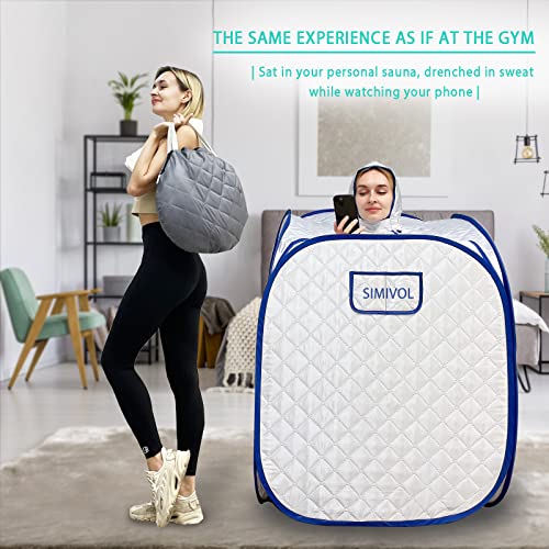 Simivol Portable Steam Sauna for Home Spa, Personal Steam Sauna Tent Indoor with Steamer, 1 Person Steam Room with Foldable Chair& Remote Control(Silver)