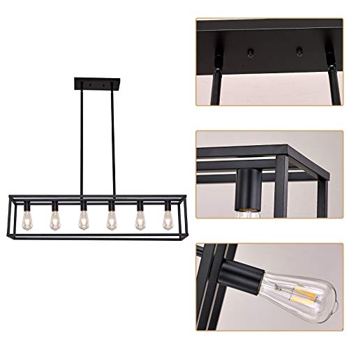 Sivilynus Black Chandelier Lighting Fixture 6 Light Metal Kitchen Island Farmhouse Dining Room Light for Table Linear Rectangular Pendant Light