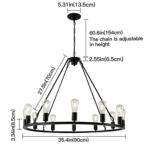 EPPARA Wagon Wheel Chandelier 12 Light-35.43in,Black Wagon Wheel Large Chandeliers for Kitchen Island,Round Light Fixture Farmhouse Chandeliers for Dining Room Living Bedroom Hallway