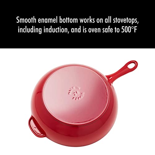 STAUB Cast Iron Pan with Lid 10-inch, 2.9 Quart Serves 2-3, Fry Pan, Cast Iron Skillet, Wok, Made in France, Cherry