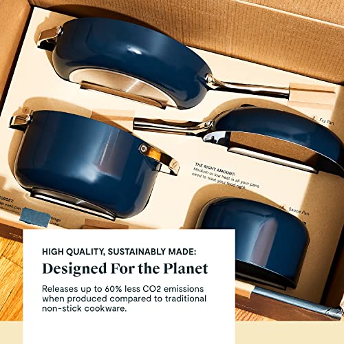 Caraway Nonstick Ceramic Cookware Set (12 Piece) Pots, Pans, Lids and Kitchen Storage - Non Toxic, PTFE & PFOA Free - Oven Safe & Compatible with All Stovetops (Gas, Electric & Induction) - Cream