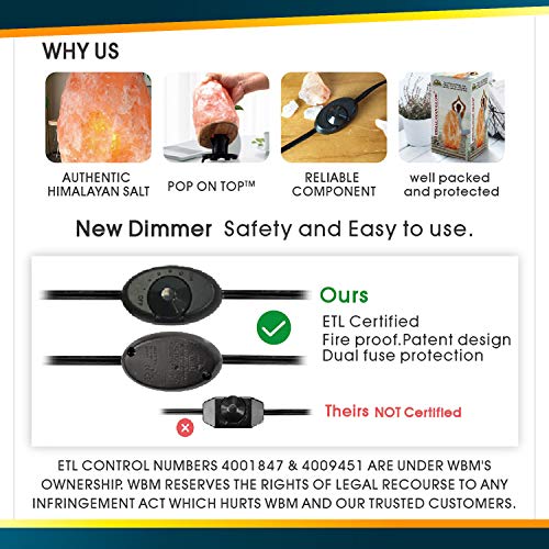 Details: Himalayan Pink Salt comes with 15-watt bulb, Dimmer switch and 6-feet electric cord. ETL-listed (complete lamp). Bring divine harmony to any room with this beautiful salt crystal lamp. It's the Perfect Choice for your Loved One's with its Superior Quality to Brighten up your Mood and Create a more Romantic Atmosphere for your Room. Experience it for yourself.