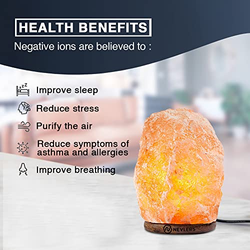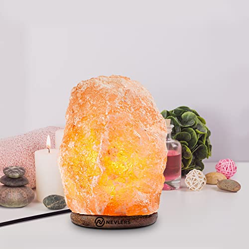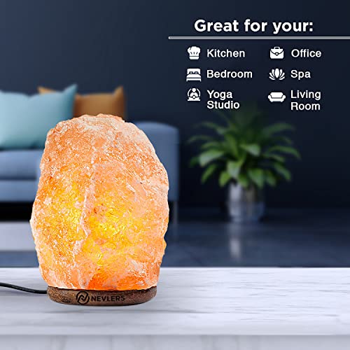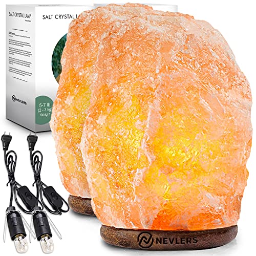 Nevlers 2 Pack 6-8" Tall 5-7lbs Natural Hand Carved Himalayan Salt Lamp with On/Off Switch & Beautiful Wood Base -Includes Light Bulb | Authentic from The Himalayan Mountains in Pakistan